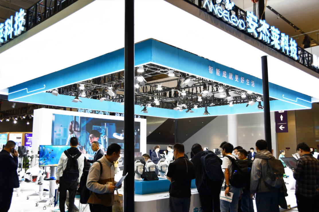 在大会8号馆新质生产力馆,安杰莱科技的展区人气爆棚,成为现场核心焦点之一。公司展示的神经康复、重症床旁康复、老年防摔预防、儿童肌骨康复全系列智能康复产品,依托“AI +脑机接口+机器人”核心技术,搭配创新的嵌入式康复训练服务模式,吸引了众多中、外客户观众驻足交流、沉浸式体验。大家惊叹不止,纷纷点赞。
