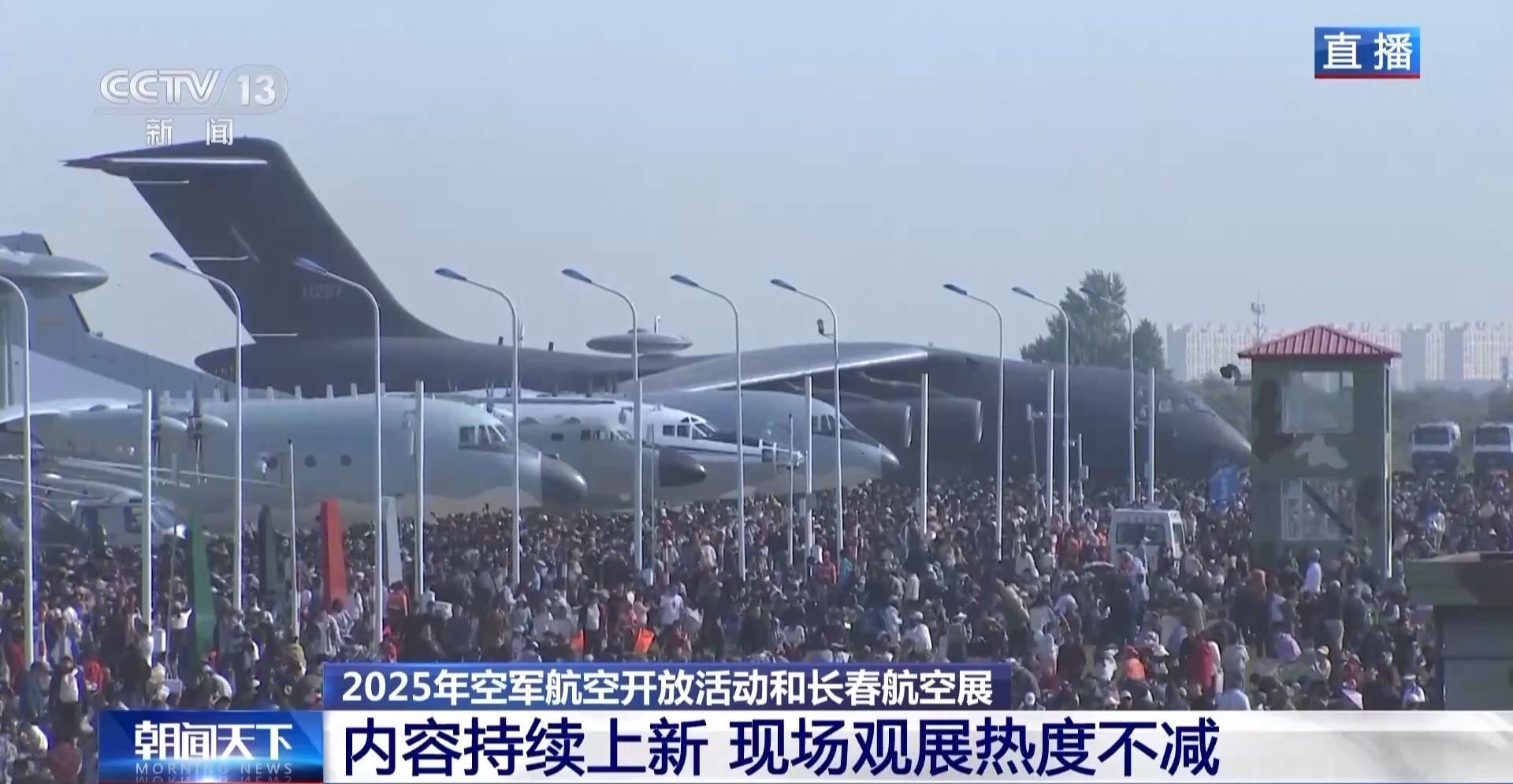 总台央视记者 刘冠青:据统计,昨天来到现场观展人数超过9万人次,今天是周末,相信今天到场人数还将再创新高。为了给观众带来更好的观展体验,今天的航空开放活动依然会上演精彩的飞行表演。